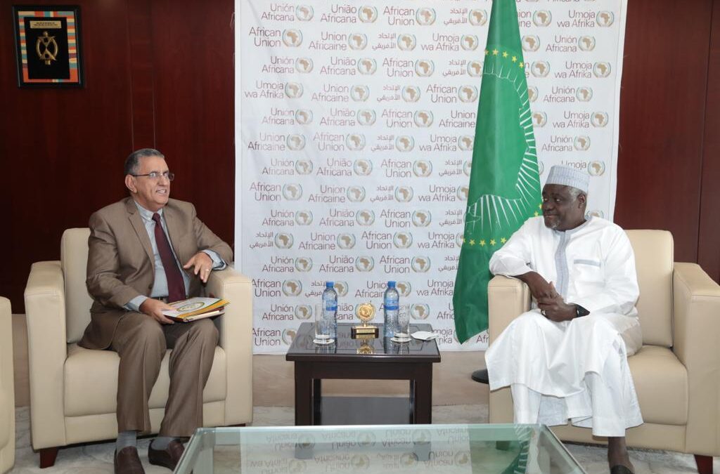Son Excellence M. Moussa Faki, Président de la Commission de l’Union africaine, a reçu le Dr Mohamed Salem SOUFI, Directeur général de l’Institut, au siège de l’Union africaine le 17 juin 2022 à Addis-Abeba. La rencontre a réuni quatre assistants du Président de l’UA, et après des mots de courtoisie, le Directeur général a présenté les difficultés qui buttent la marche l’Institut et l’examen des voies et moyen pour aplanir ces défis pour la concrétisation des projets majeurs de l’Institut en souffrance.
